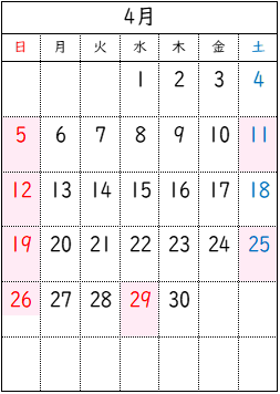 【休業日:4月29日(水)、5月3日(日)~5月6日(水)】