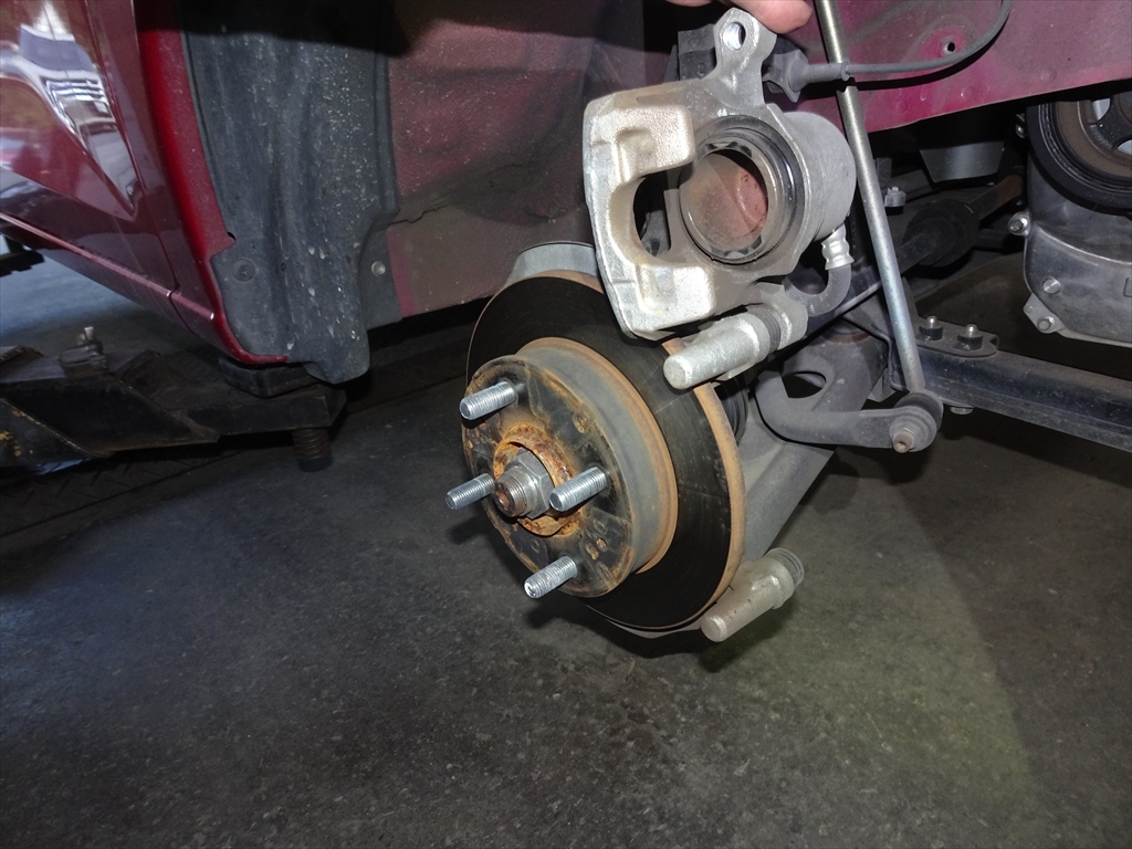 ブレーキパッドの残量は5.4mmほどと半分程度摩耗しています。