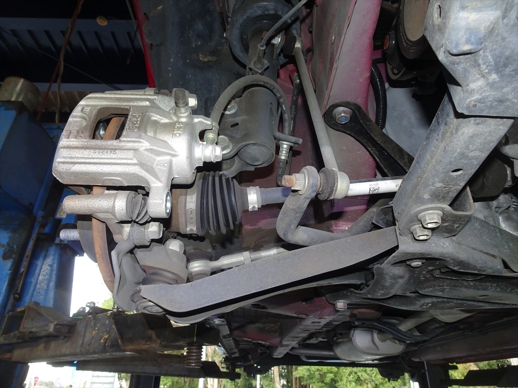 リフトアップして足回り・下回りを点検していきます。