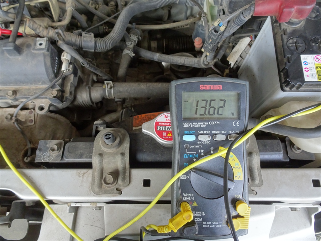 本当はオシロスコープで見ると分かりやすいのですが、簡易的な点検は電圧の測定でも可能です。